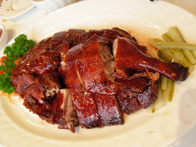 果然, 烧肉皮脆肉嫩, 吃起来肥而不腻,颇讨人欢心. 而半肥瘦的蜜汁叉烧色泽光亮、瘦肉焦香, 不像一般广东叉烧得个甜字, 连猴子姨姨爱吃的烧鸭也色泽红艳,油润光亮,皮酥脆,肉滋嫩鲜甜,配上秘制酱汁, 口感一流.