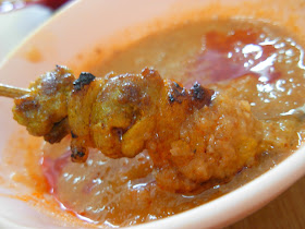 至于沙爹酱也比隆安来的浓稠, 偏酸, 还可咬到一丝丝的黄梨纤维.