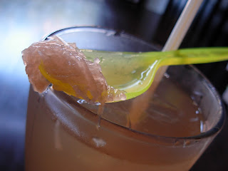 再来, 老板自创的“金丝凉茶”冰凉清香,沁入心脾, 让三只猫一试难忘. 店内的资深服务员只肯透露凉茶的主要材料为竹蔗, 至于那一丝丝, 非常爽口的“金丝”却问不出个所以然. 如果没猜错, 那一定是鱼翅瓜(又名金丝瓜)吧!