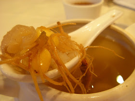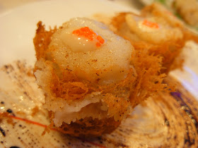 “芋茸带子盏” 卖相好, 外层脆口, 内层芋泥绵密, 再加一片薄薄的鲜带子, 不错.