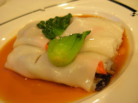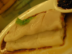 滑滑嫩嫩的“香茜叉烧肠粉”加了点香茜调味, 更添风味.