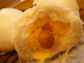 “夏果奶皇包”包皮够松软, 恰到好处的奶香味, 不会太甜, 再加上一粒脆口的夏娃夷果, 大大的提升了口感.