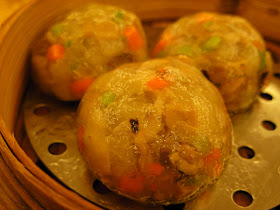 喜欢“珊瑚柱补黄金球”的青葱碧绿(包菜总比饺子皮有益)及美味的酱汁, 还有哪撒在表面的炸葱和干瑶柱丝, 非常惹味爽口.