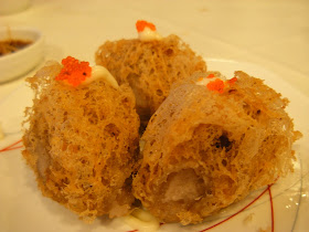 “凤凰肉松脆皮卷”内馅为鲜虾鸡丝咸蛋黄, 非常鲜甜脆口及带点咸香, 只是外层颇油腻.