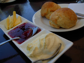 也别忘了餐厅自制的草莓果酱和带有淡淡香草味的香滑鲜奶油. 由新鲜金马仑草莓制成的纯草莓果酱特别清香. 因为果酱都会比较甜, 所以只需抹上薄薄的一层草莓果酱和一大匙的鲜奶油即可. 两者融合出来的味道也出奇的好, 怪不得每个试过的人都赞不绝口.
