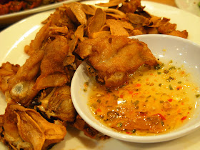 招牌菜“姜片炸田鸡”的特别之处在于那炸的入口即化的薄姜饼, 不辣微咸. 田鸡则是原汁原味, 沾一点随碟而上的泰式辣酱也不错.