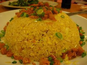 众人推荐的“乾隆炒饭”先上, 心想卖相普通, 怎会那么贵? 原来是加了非一般的配料如带子、蟹肉、干贝及鲜虾球. 金黄色的香米粒粒分明,颗颗饱满, 每人分得一小碗.