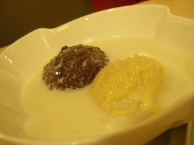 再来一碗“椰汁黑糯米榴连”. 椰汁超甜, 黑糯米够Q, 拌上味道浓郁的榴连泥, QQ、香香、甜甜、苦苦, 很过瘾.