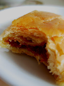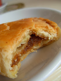 咖椰角的饼皮很脆但不松化, 金黄色的咖椰吃起来比较干身, 甜度适中, 有股很特殊的香味, 直觉是姜吧?