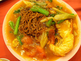 为喵仔而点的“生虾面”, 味道偏甜(像味精), 且茨汁打的糊糊的, 很腻!