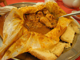 原来游记面包鸡有两种口味, 即咖喱味和药材味. 一直听说的是咖哩面包鸡, 就点了一份小的(半只鸡份量).