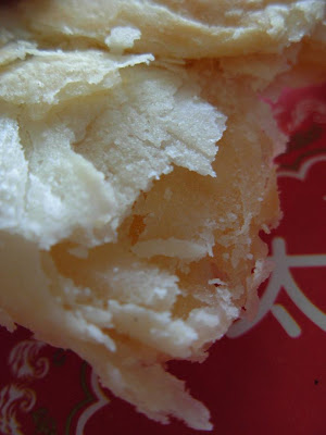 喵喵妈咪轻轻的咬上一口, 饼皮煞间掉落满地, 果然酥化非常, 内馅麦芽糖柔软不黏牙不甜腻, 好呷! 好呷! 不愧为台中名产.