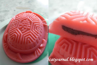 很明显,“新新”的椰浆燕菜糕主要是提供给寿宴用途的, 因为除了外形是一只长寿龟, 背壳上还印有一个大大的寿字, 取其“吉祥,延年益寿”之意.