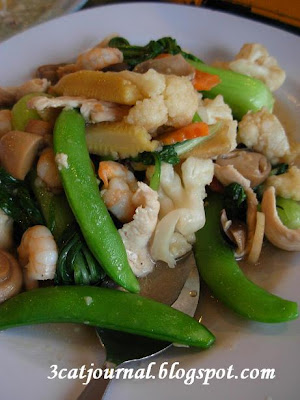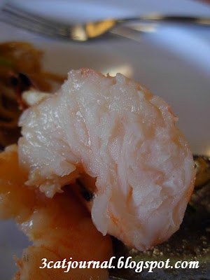 听说这里的麒麟虾都是现捉现煮的, 味道鲜甜弹牙, 果然名不虚传. 喜欢生吃的还可来点虾刺生, 但三只猫和慢姨姨就不敢试了.