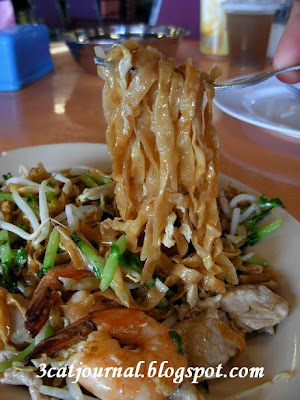“香妃客家面”乃大炒小吃部门的招牌食品之一. 用香妃菜苗来炒面, 三只猫还是第一次见到. 类似宽板面的面条, 吃起来很有嚼劲且味道不错, 其它配料还有黄豆芽、猪肉片、鸡蛋和麒麟虾.