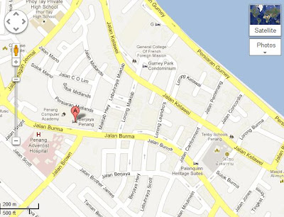 从大众美食指南得知槟城驰名椰脚街(Pitt Street)粿条汤在车水路(Jalan Burma)的海安饭店(Restoran Hai Oan)设了分档, 当然不放过品尝的机会了.