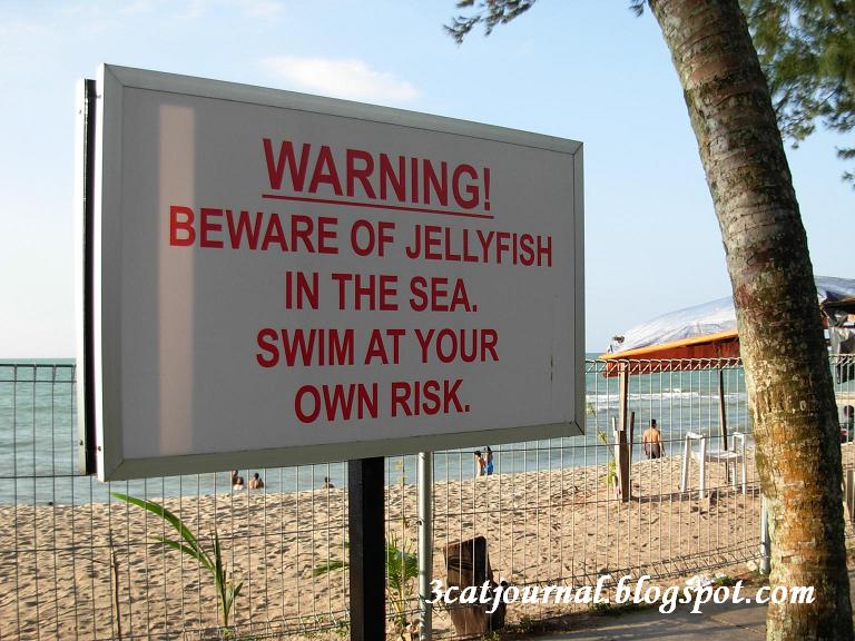 本来光着脚漫步沙滩是件很浪漫的事情, 但右脚一踩, 哔一声, 左脚一踏, 又哔一声, 搞到两脚滑滑, 冰冷, 湿湿又不懂有没有毒素的感觉, 恐怖的很! 喵~