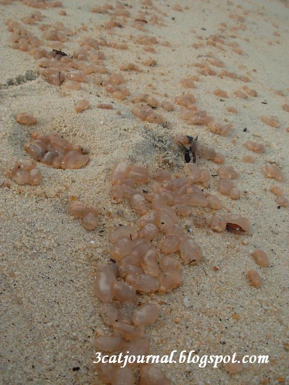 最可惜的是, 不懂是什么东西的繁殖季节, 搞得沙滩边满是一粒粒2角钱大小的透明状物体, 问渡假村的工作人员也不清楚.