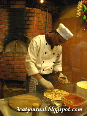 忽然, 让人眼前一亮的开放式披萨厨房深深地吸引三只猫的目光, 尤其那由红砖盖成的柴窑, 更加令人雀跃万分.