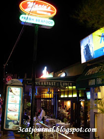 晚餐时分, 三只猫漫步于岩都丁宜海滩一带的异国餐馆, 寻找心目中的美食.