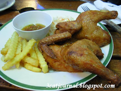 “炸童子鸡”乃喵喵之前试过的一道料理。童子鸡的外皮很香脆,里面的肉质依然保持鲜嫩有嚼劲,沾一点老板自调的泰式辣酱,够惹味。