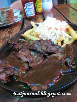 烤得香气四溢(喵喵喜爱的炭香味)的鸵鸟扒足足有3大厚块,配上香浓的黑椒汁,很入味,肉质鲜嫩多汁,很赞!