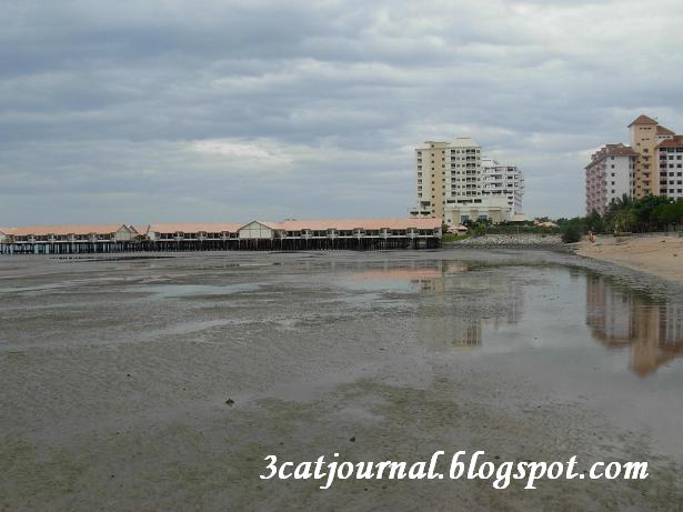 三只猫和慢姨姨在自家阳台享用了“久拉揸面食”和“悦兴海南鸡饭”后,就到附近的Riau沙滩走走。