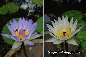 炙炎酷热,三只猫爱躲在阴凉的水力按摩池,偶而“移”至大泳池,仰着头,欣赏蔚蓝的天空,纯白的云朵,椰影婆娑,微微闭上双眼,感受着四周围的一切,不知怎的,就是很写意很享受,不知不觉得就在泳池待了几个小时。