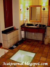 一打开门,首先进入眼帘的是非常宽阔且豪华的卫生间,地上还嵌入一片透明方形玻璃,让你一睹“朦胧”的海底世界。