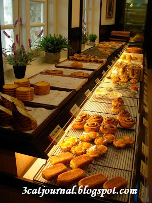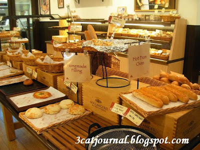 三只猫觉得在典雅浪漫的环境下享用新鲜出炉的面包是最可口的,买回家得话就什么气氛也没了!再说,吃惯软面包的三只猫,一下子要接受口感比较有嚼劲的欧式面包,还真需要点时间。