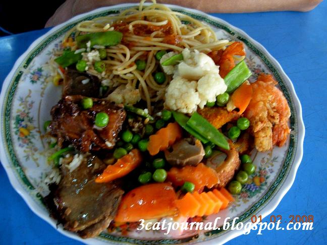 因为喵仔开始困了, 三只猫随便选了一间华人海鲜馆 (Orkid Ria Seafood Restaurant), 点了鲜贝甜豆、虾仁杂菜和海鲜豆付各一份, 付账时才马币60多元, 真的是平、靓、正.