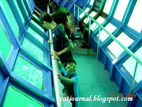三只猫看到礁台上有个潜水台, 还有专人指导潜水运动(Scuba Diving); 此外, 三只猫还知道礁台的底层有一间海底观察密室(Underwater Observation Chamber), 专给不想湿身的游客观赏海底世界, 就进去瞧瞧.
