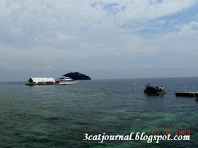 首先映入眼帘的是一座由「沙佳旅游有限公司」(Langkawi Saga Travel Sdn Bhd) 所设立的全马首座海上礁岩平台(Reef Platform), 水手们正熟练的把快艇靠向礁台, 好让我们安全的踏上礁台. 接着领队给每个人分配好座位, 再告知大家礁台上的设备、午餐、各类活动时间及确定每个人都拿到一套浮潜用具, 即面具、换气管和救生衣之后, 大家就可以自由活动了.