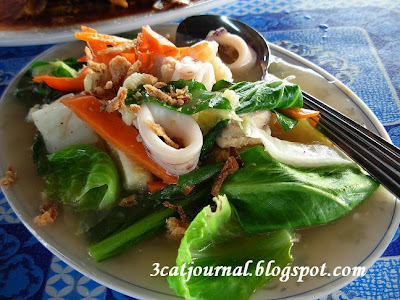 终于开饭了! 第1道乃加了大量洋葱和香茅枝烹煮的“蛤蜊汤”。汤汁鲜甜无比,蛤蜊肉质嫩滑,难怪这里的游客都喜欢自备工具在烈热下往退潮后的沙滩里拼命挖掘啦!