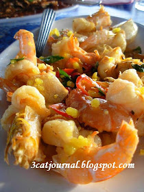 咦, 这“奶油虾”的卖相怎么跟一般的不同? 奶油都结成块状,见不到香脆的奶油蛋丝,也吃不到应有的奶油香,唯一可取乃虾只够弹牙爽口而以。