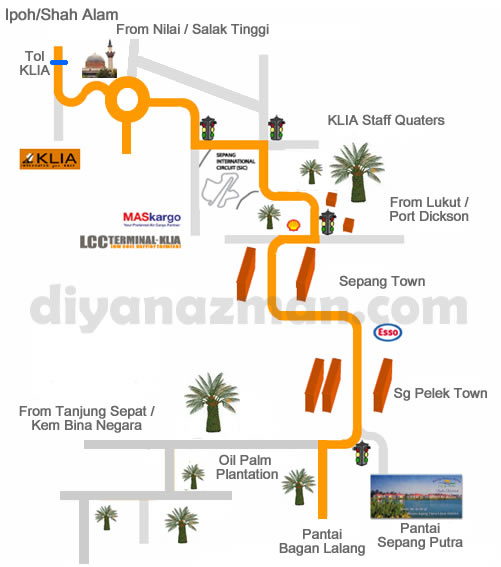 - 过了KLIA大道收费站,再沿着雪邦一级方程式国际赛车场的方向前往,从大道转左。