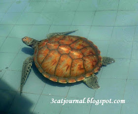 三只猫抵达的时候刚好是工作人员午休时分,人潮不多,但中心大门照开,访客照入,不是问题。只是少了工作人员的讲解和摸一摸海龟的机会罢了。