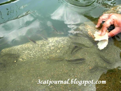 过后就回到河边喂喂鱼,河里的鱼儿都不怕生,看到面包就涌过来。