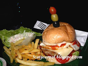 喵仔的“招牌鸡肉汉堡包”超大份的,味道也不错,只是蔬菜沙拉拌入过量的美奶滋,越吃越腻!
