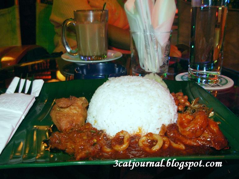 参巴超辣,花生和炸江鱼仔都很香脆,只可惜鸡块炸得又干又硬,参巴虾又煮得过老。