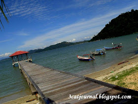 喵喵妈咪和喵喵爹地第一次到邦咯岛拍拖就投宿于设备比较齐全的大蓝海湾度假村(Teluk Dalam Resort)。想起耒已是十几年前的事,当时还没有私人码头(Teluk Dalam Jetty)。