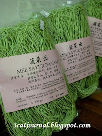 经过位于面档斜对面的陈金溢面家,被半手工制作,不含人造色素的菠菜面所吸引,忍不住买了几包作手信。