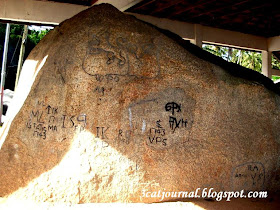 往古堡右边的小径直走,就会看到被凉棚遮盖着的刻字石(Batu Bersurat)或老虎圆石(Tiger Rock)。