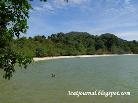 不久就到达邦咯岛最富盛名的邦咯海滩 (Pasir Bogak),对面的小岛就是奢侈的绿中海度假村(Pangkor Laut Resort),可惜只允许住客上岛。