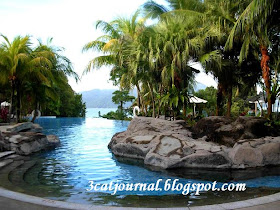 相比起来,瑞园度假村的泳池就漂亮得多了!客人可以一面游泳一面欣赏海景,真是人生一大享受也!