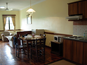 通过了度假村的警亭,继续往前走3分钟左右,就会看到位于右手边的瑞园阁度假公寓(Swiss-Court Holiday Apartments),也就是三只猫这几天的落脚处。