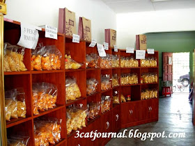 大部分的产品都可以试吃。因为三只猫觉得这里的木薯片不够薄脆,所以只选了菜饼、豆饼、甜香蕉片和花生脆饼。