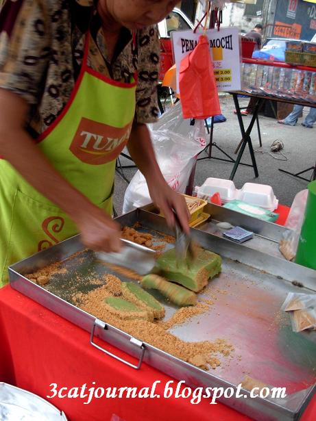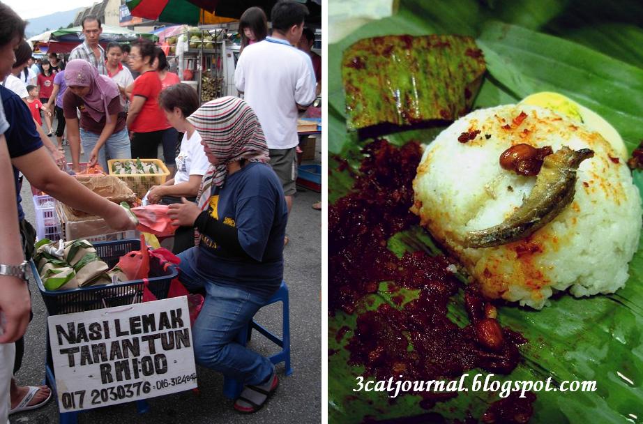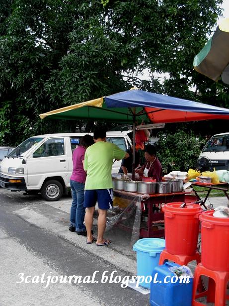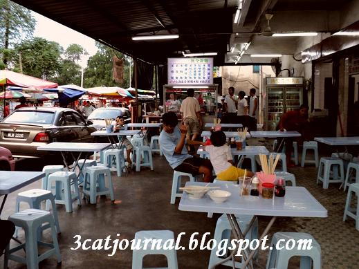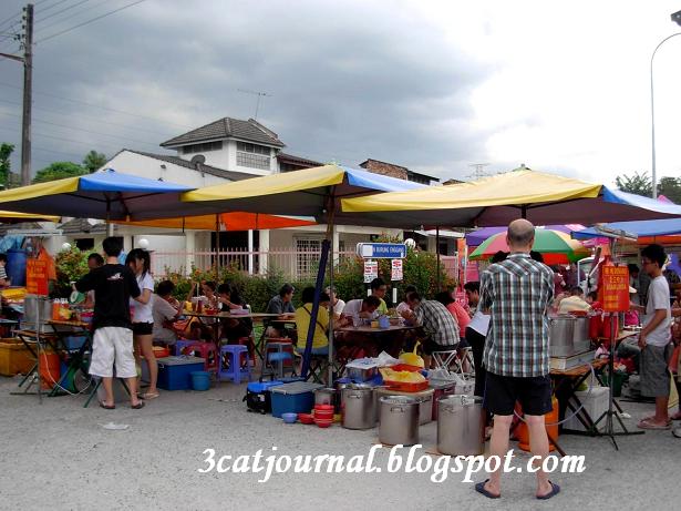 每逄星期日,如果三只猫没回喵婆婆家,傍晚就爱跑到甲洞武吉马鲁里花园夜市找吃,贪它够近,食物选择又多,而且价格比餐馆便宜得多。