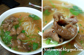 白里泛红的汤头,喝起来一点也不油腻,但清甜归清甜,却少了那股牛味。牛杂包括有牛腩、牛肉、牛筋和牛肺等等,软而不烂,仍保有嚼劲,面条则缺乏韧性。