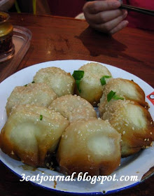 体积有如马来西亚芙蓉烧包大小的生煎包看起来有点凹,包子底部煎得微焦,表面零星点缀着白芝麻及香葱。